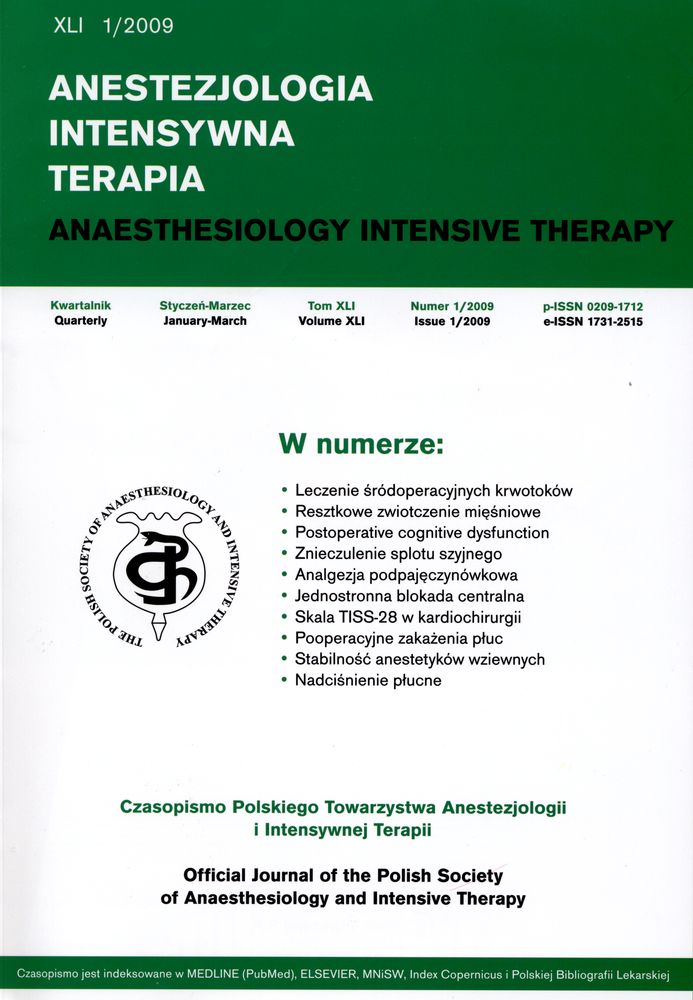 Od T. 15 (1983) tyt. także w jęz. ang.: Anaesthesiology, Intensive Therapy.