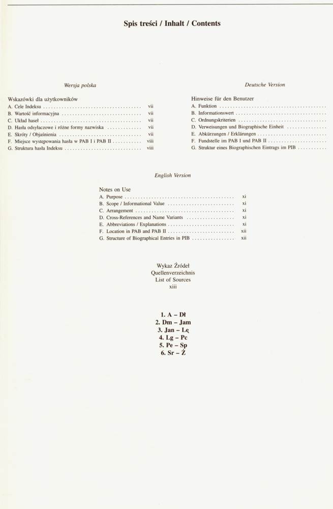 Spis treści, wskazówki dla użytkowników w jęz. pol., niem. oraz ang.
