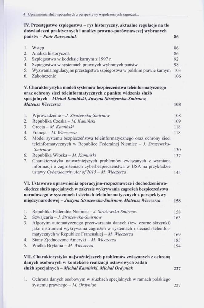 Stanowi kontynuację publikacji pt.: Analiza rozwiązań prawnych w zakresie funkcjonowania służb specjalnych w wybranych państwach. Emów, 2017.